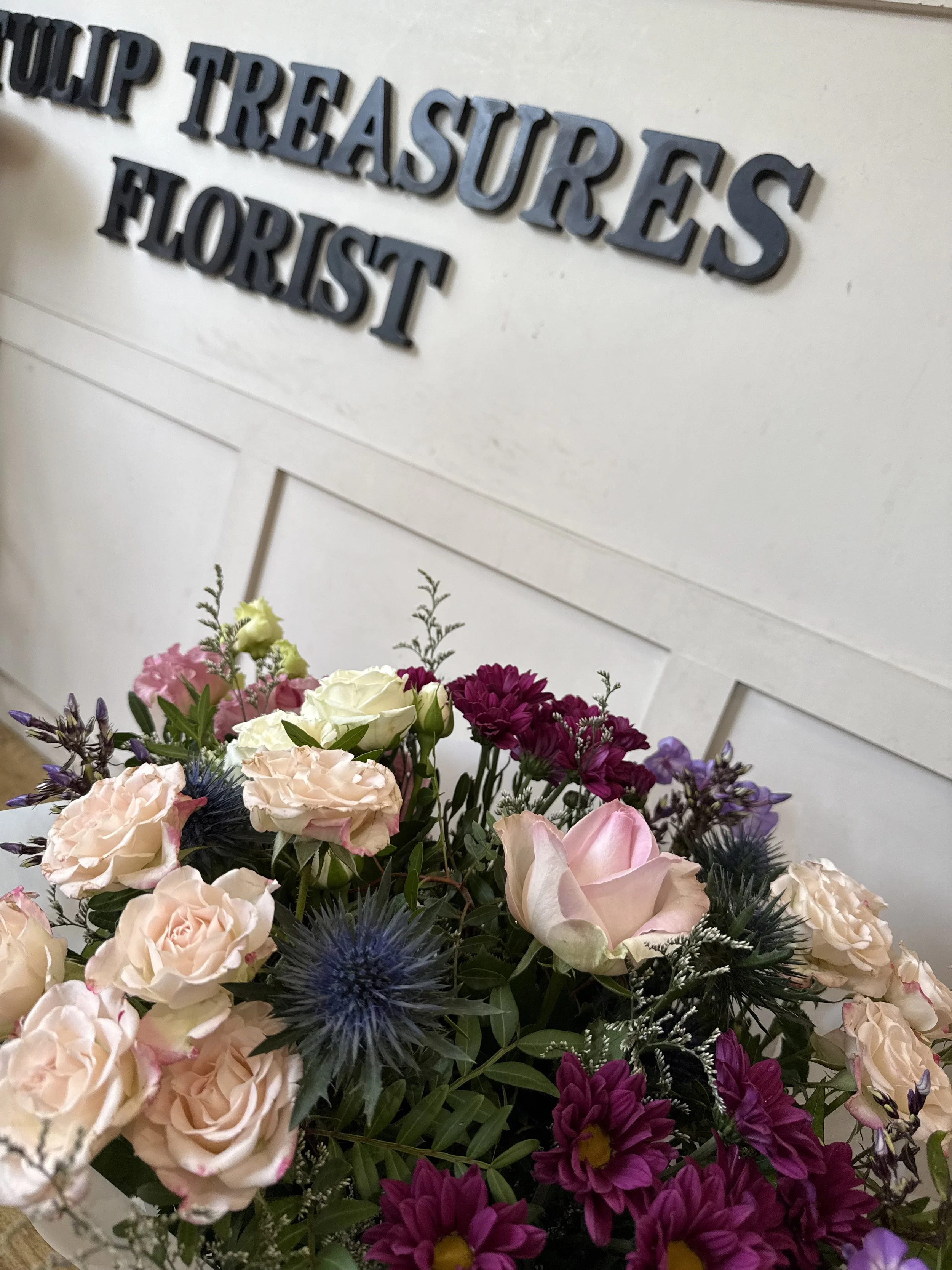 At Tulip Treasures Florist, we are proud to offer a wide range of flower arrangements and gifts to suit every occasion. Each creation is lovingly crafted by Rhiannon in our Shepperton shop, where fresh blooms and creativity come together to bring your floral vision to life. Whether you’re looking for custom flower arrangements, luxurious bouquets, or thoughtful tributes, we’re here to help you celebrate life’s special moments with beauty and care. Explore our collection and find something perfect for your next special occasion.